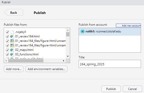 At this point you will be redirected to a webpage to sign in. Use your stolaf account to log in and follow the instructions to connect your RStudio to the server. Go back to your desktop RStudio and click ‘Connect Account’.